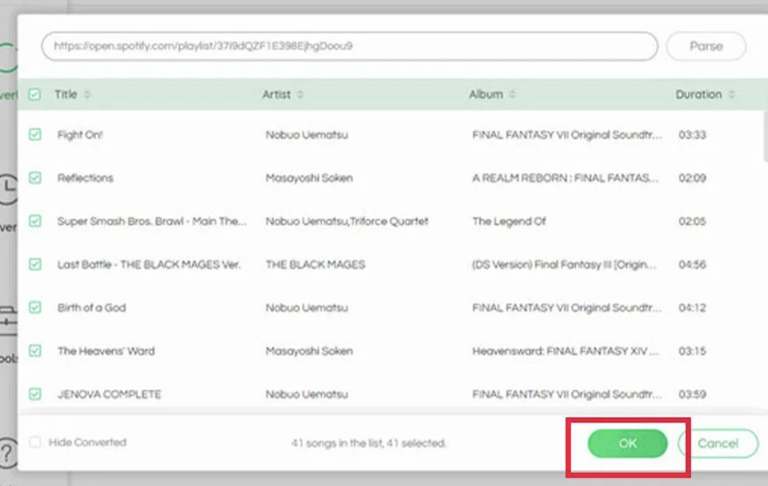 Bước 3: Các bản nhạc của bạn sẽ hiển thị theo tên. Kiểm tra xem chúng có đúng không, sau đó nhấp vào OK.