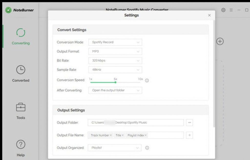 Bước 4: Nhấp vào biểu tượng cài đặt ở góc trên bên phải để chọn cài đặt đầu ra của bạn. Bạn có thể chọn chế độ chuyển đổi , chất lượng âm thanh (trong giới hạn của Spotify) và vị trí tệp của bạn.