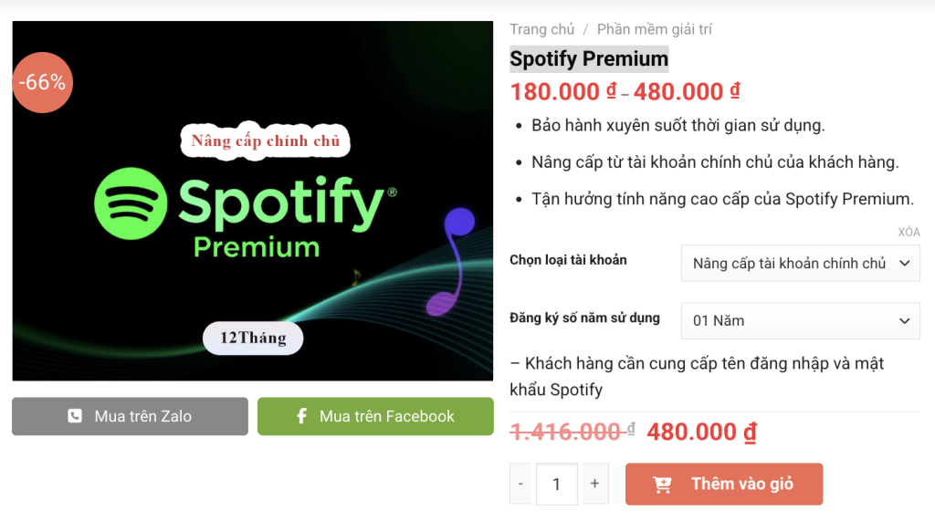Giả dụ trường hợp tất cả các trường hợp bên trên đều không khả thi thì chúng ta có thể lựa chọn phương án nhanh nhất đó là nâng cấp Premium cho Spotify. Tại adshopkeys.com chúng tôi đang cung cấp Spotify Premium với giá rẻ hơn rất nhiều so với phía nhà bên cung cấp.