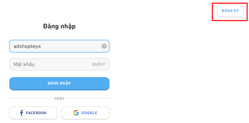 - Tài khoản 2: Đăng ký bằng Google hoặc Facebook (nếu chưa dùng chúng cho tài khoản đầu tiên).