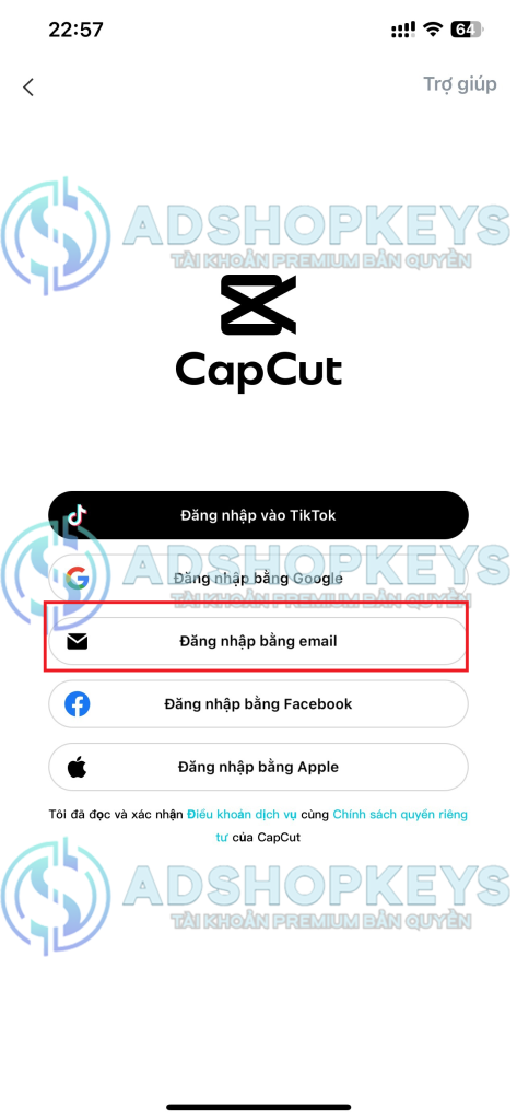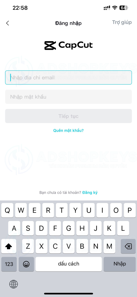 Hiện tại Adshopkeys đang cung cấp sản phẩm Capcut cấp sẵn và nâng chính chủ. Với sản phẩm nâng chính chủ thì đã dễ rồi mình xin phép không hướng dẫn nhé, còn tài khoản Capcut cấp sẵn – các bạn sẽ làm theo hướng dẫn bên dưới nhé.