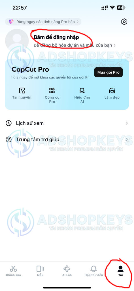 1. Hướng dẫn đăng nhập sản phẩm Capcut tại Adshopkeys? #