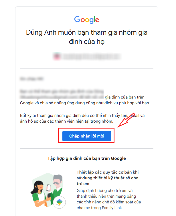 Bước 5: Sau khi adshopkeys.com nhận được thanh toán, bên mình sẽ gửi lời mời tham gia nhóm gia đình thông qua mail bạn cung cấp. Bạn cần check mail và ấn “chấp nhận lời mời” để tham gia.