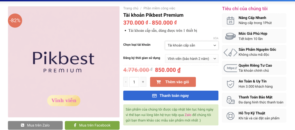 Với nhiều các chính sách bảo hành lâu dài, các bạn hoàn toàn có thể yên tâm để sử dụng với giá rất mềm, bạn có thể mua tài khoản tại đây với giá giảm đến 82% so với việc tự nâng cấp tài khoản Premium tại Pikbest.